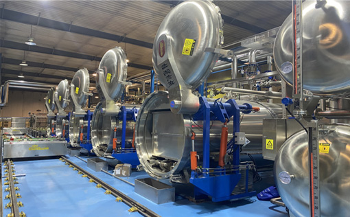 每月可生產(chǎn)殺菌設(shè)備20臺(tái)/套以上,擁有自動(dòng)焊接、切割設(shè)備、折彎設(shè)備等.設(shè)備齊全,殺菌釜、裝籃機(jī)、卸籃機(jī)、 臺(tái)車、籃筐、托盤、控制箱、等等配件 的制造和組裝都在桂冠工廠完成,實(shí)現(xiàn) 整機(jī)的調(diào)試和FAT工廠驗(yàn)收,能幫助設(shè)備 “準(zhǔn)時(shí)”啟動(dòng)和運(yùn)行得更快、更順暢。